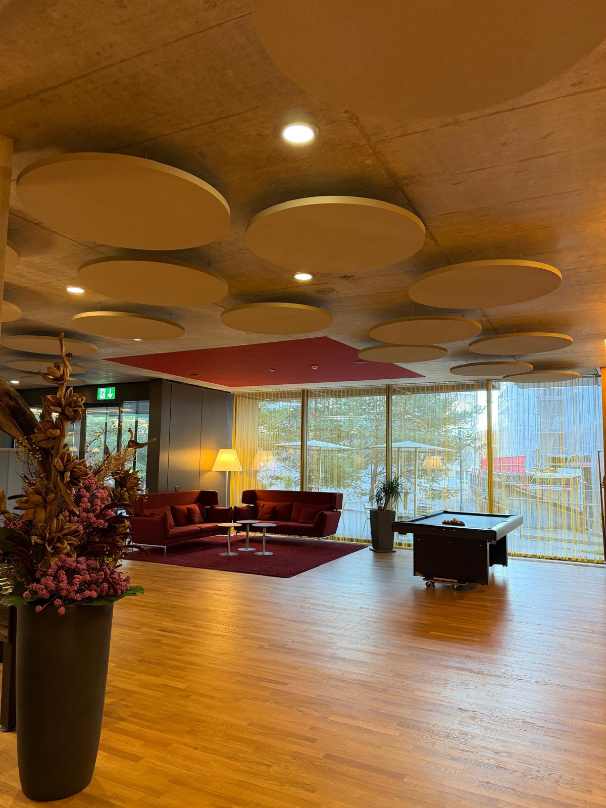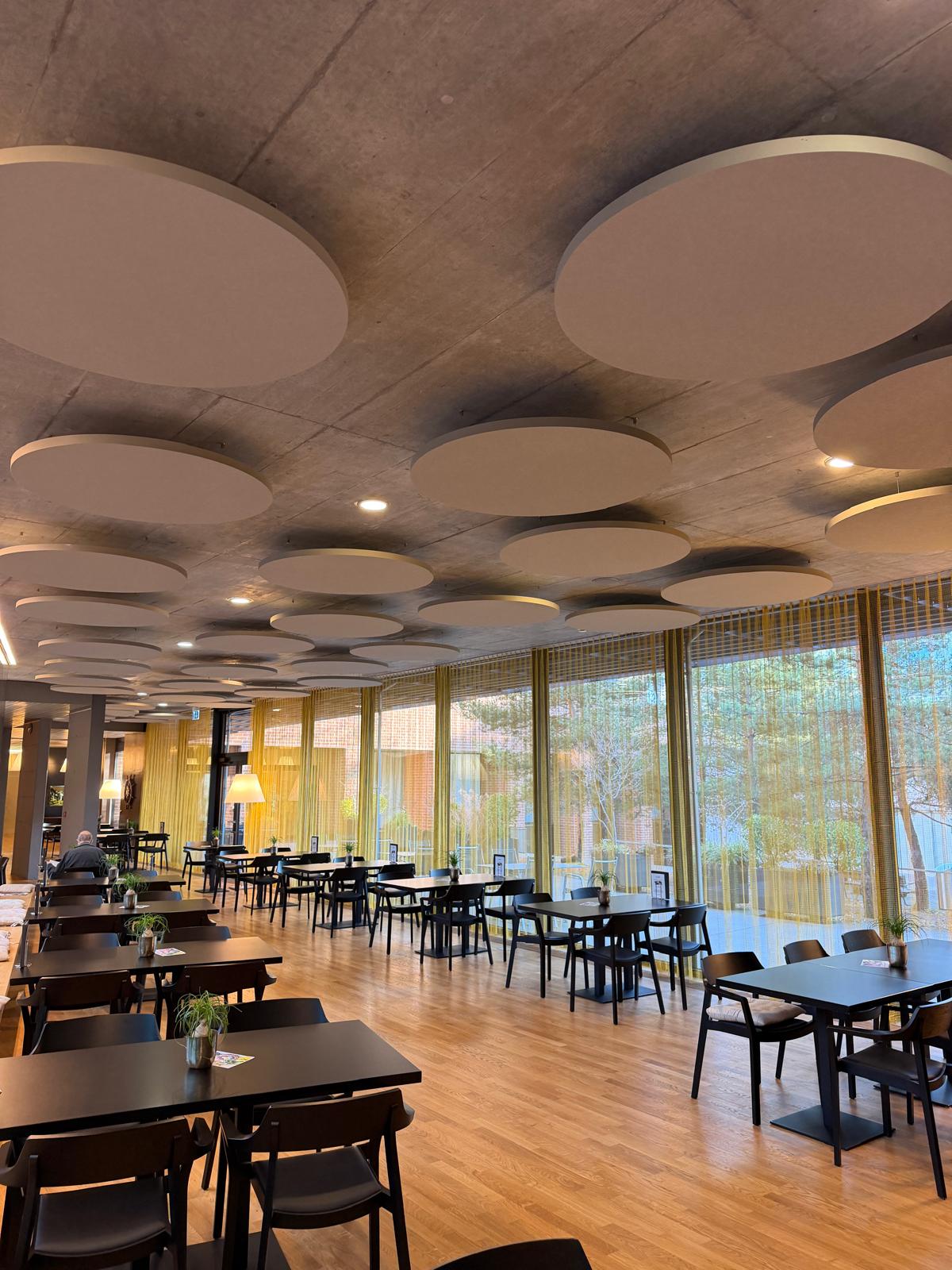 Unsere Partnerfirma Cridea Akustik AG hat in einem Seniorenheim erfolgreich 90 runde Deckensegel des Typs Mikropor AS VE installiert – ausgeführt in einer individuellen Sonderfarbe.