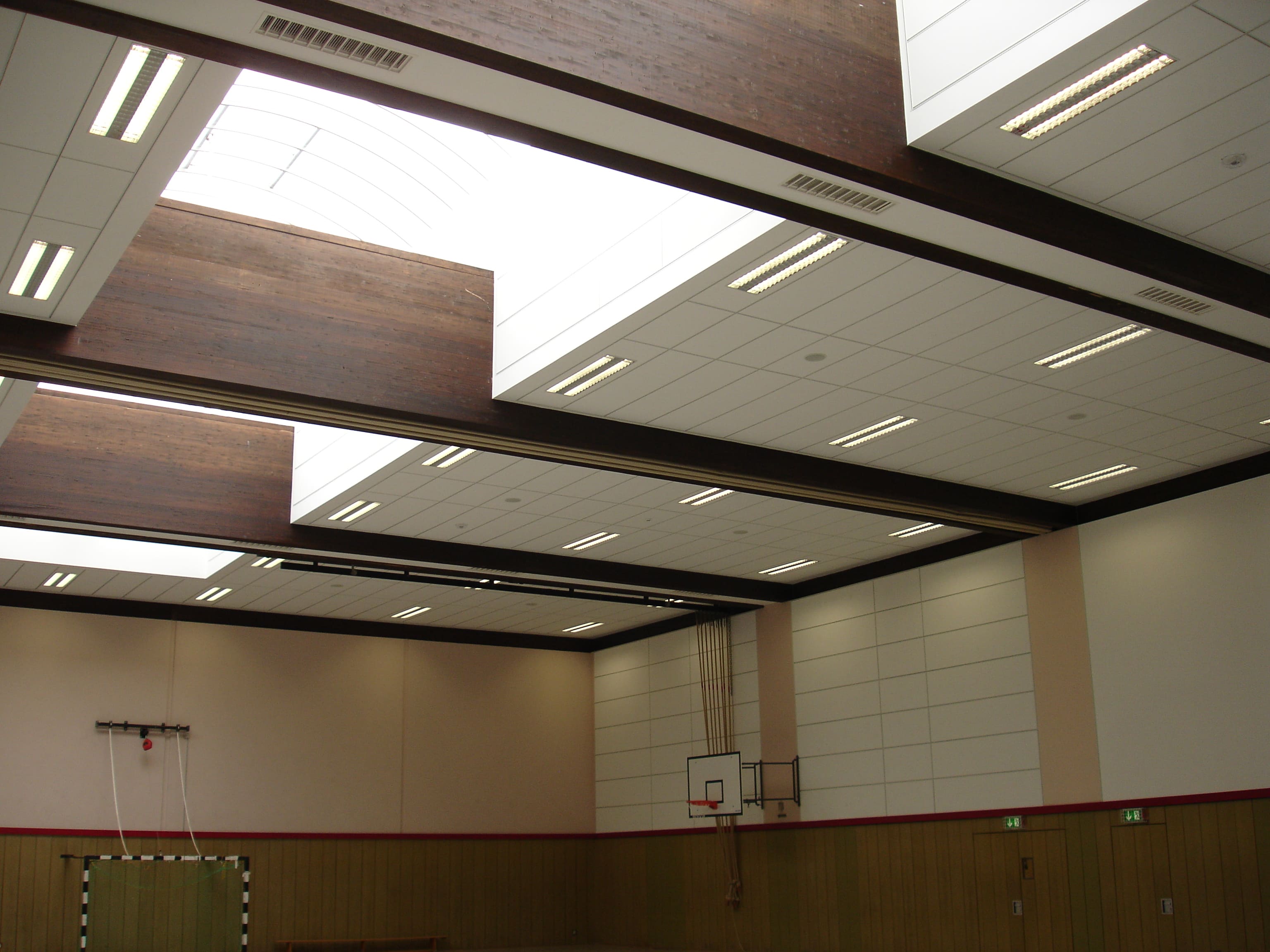 Die verbauten Akustikplatten haben über 50 Jahre zuverlässig ihren Dienst geleistet – inklusive Ballwurfsicherheit im täglichen Sportbetrieb.